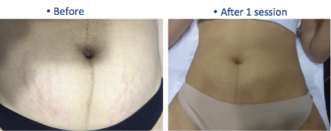 Stretch Marks treatment consists in 1 session every 4 weeks with a Maximum of 3 sessions needed!